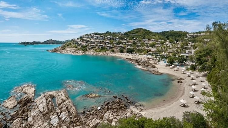 Learn MoreSet in a private bay with a pristine sun-kissed beach in the Northeastern part of Koh Samui, The Ritz-Carlton, Koh Samui, is an idyllic haven for an island escape. Located in Choeng Mon, approximately 15 minutes by car from the airport, the resort offers 175 suites and pool villas and a wide variety of recreational, culinary and wellness activities.